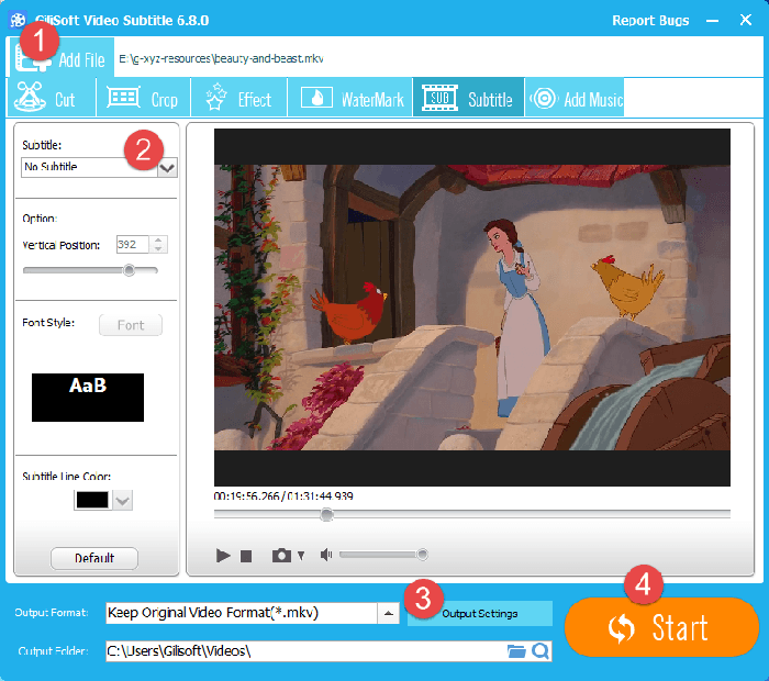 4. Wenn Sie alle Vorgänge abgeschlossen haben, klicken Sie auf die Schaltfläche Start, um Untertitel zu Ihrem Video hinzuzufügen.